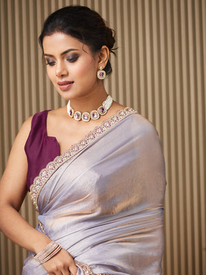 Light Pink & Magenta Banarasi Silk Saree With Blouse Piece